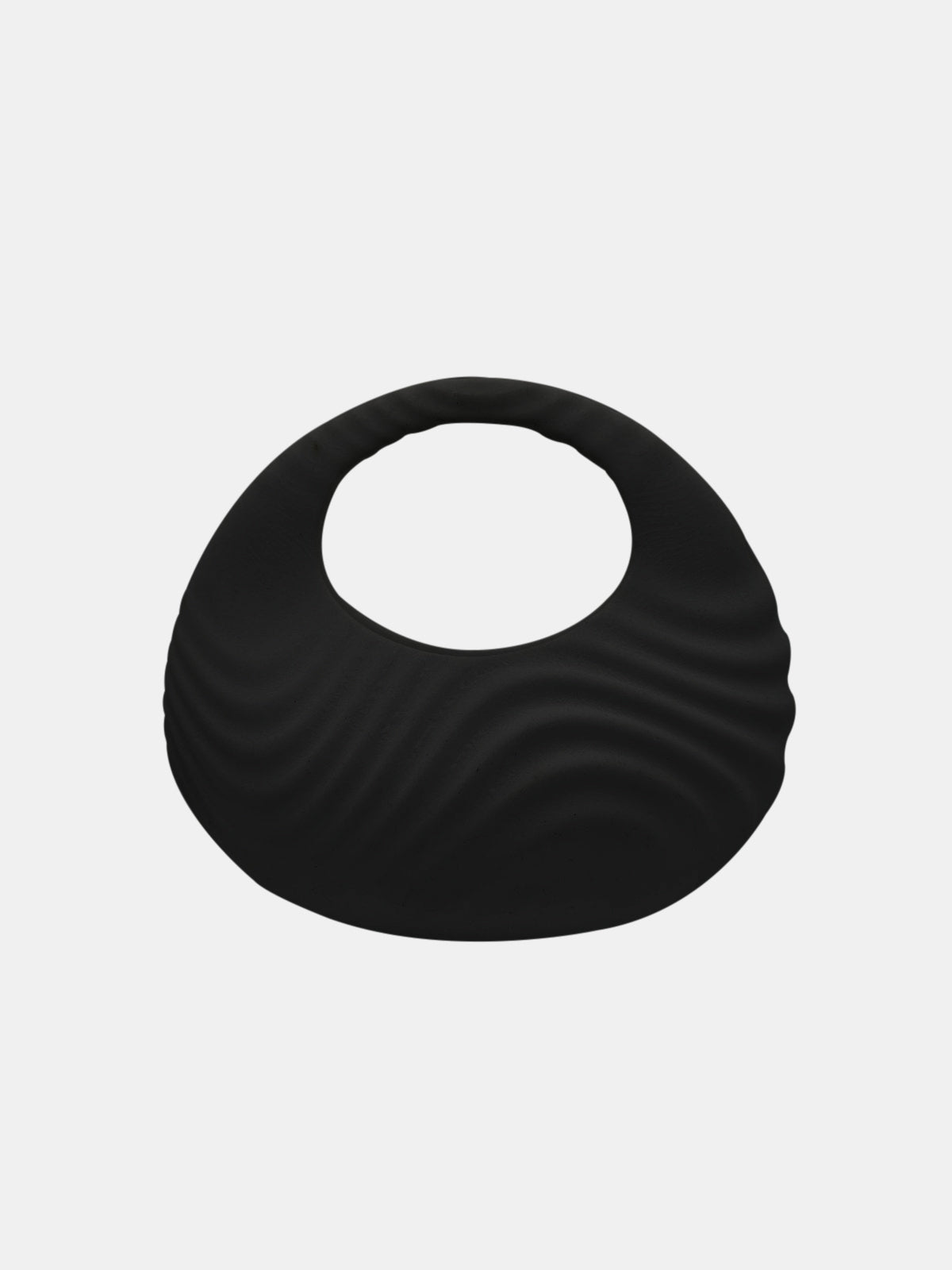The HELIX 3D-printed mini bag is crafted with precision. The bag's unique oval shape and continuous handle design showcase the innovative possibilities of 3D printing technology. The textured surface, reminiscent of gentle waves, adds a tactile dimension to the matte black finish, ensuring that this accessory stands out in both form and function. Lightweight yet durable, this bag is a statement piece that redefines the boundaries between technology and style. Ideal for those who appreciate artful design and cutting-edge craftsmanship